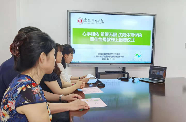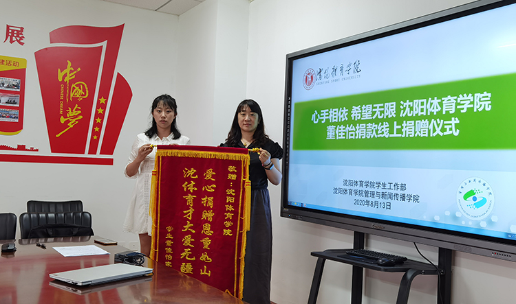 8月13日下午 14:30,管理与新闻传播学院举行了“心手相连 希望无限”——“为董佳怡捐款”线上捐赠仪式,党委学生工作部代表学校和管理与新闻传播学院一起将全部爱心捐款捐赠给董佳怡。董佳怡的母亲现场宣读了感谢信,并委托辅导员曹悦向学校赠送锦旗,期间她多次言语哽咽,表达了对学校的万分感激之情。学生工作部副部长庞宏娜、管理与新闻传播学院党总支书记张建波、副书记高鸿雁和全体辅导员参加了本次捐赠仪式。